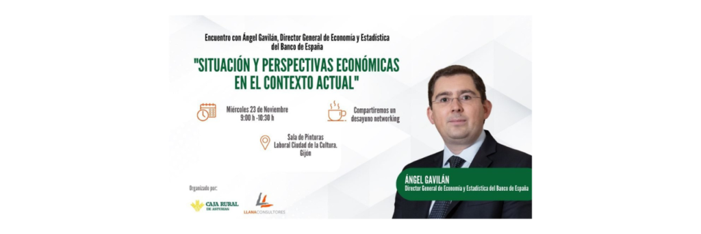 Llana Consultores, en colaboración con la Caja Rural de Asturias, organiza el próximo 23 de noviembre a las 9 horas el encuentro «Situación y perspectivas económicas en el contexto actual» con Ángel Gavilán, director general de Economía y Estadística del Banco de España, que tendrá lugar en la Sala de Pinturas de Laboral Ciudad de […]